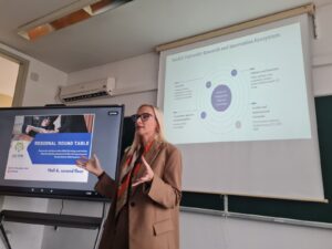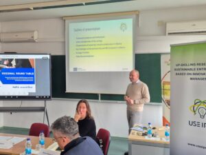 On 5 December 2025, the Faculty of Economics, University of Banja Luka, hosted the regional round table within the USE IPM – Up-skilling Researchers for Sustainable Entrepreneurship based on Innovation Process Management project. The meeting focused on presenting, comparing, and harmonizing national Research and Innovation (R&I) Strategies and Action Plans aimed at strengthening the entrepreneurial ecosystem in the widening countries: Albania, Bosnia and Herzegovina, North Macedonia and Serbia.